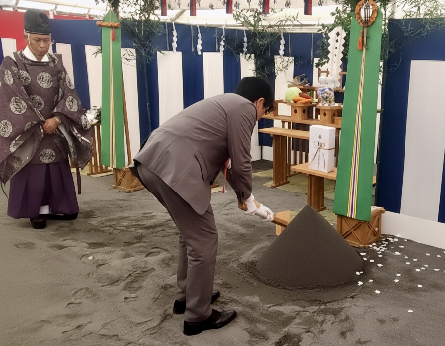 2025年10月15日 つくば工場では事務所棟の着工に伴い、地鎮祭が執り行われました。
