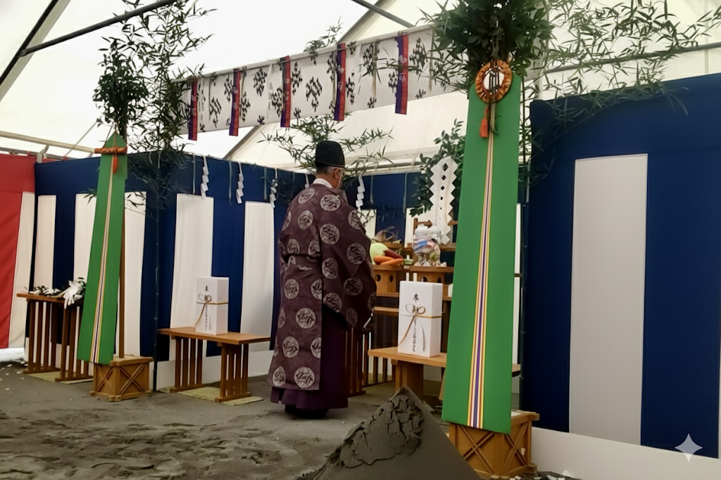 2025年10月15日 つくば工場では事務所棟の着工に伴い、地鎮祭が執り行われました。